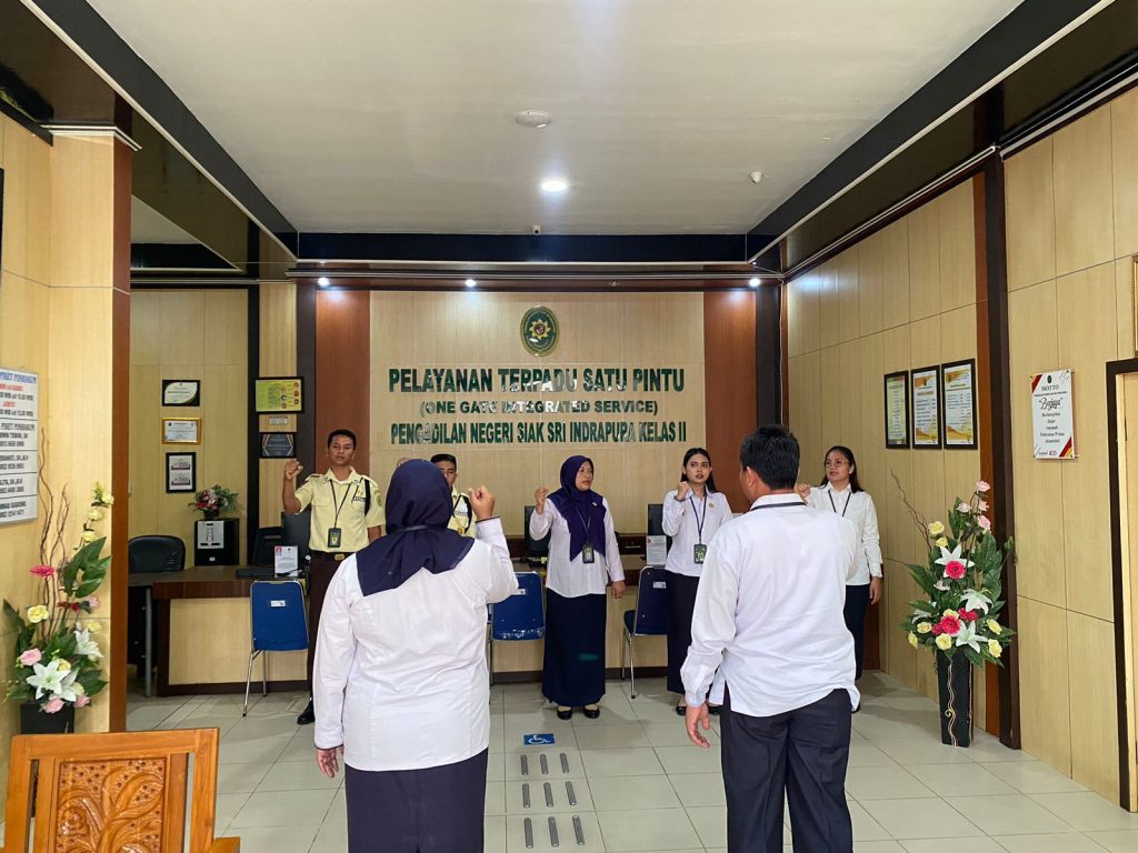 Siak Sri Indrapura – Selasa 15 Juli 2024 Kasubbag Kepegawaian Ibu Halide Nasution, S.H., selaku Penanggungjawab Pengelola PTSP memimpin Semangat Pagi PTSP Pengadilan Negeri Siak Sri Indrapura bersama dengan Pejabat Pengelola PTSP Bapak Baginda Sultan Firmansyah, S.H., Bapak M. Irwan Tofani, S.E., M.Ak. Setelah menyanyikan yel yel PTSP PN Siak Sri Indrapura Penanggungjawab Pengelola PTSP mulai menanyakan tentang progress maupun keluhan serta hambatan di masing-masing bagian PTSP serta mencari solusi dan tindak lanjut terhadap hambatan tersebut. Semangat pagi ditutup dengan doa bersama.