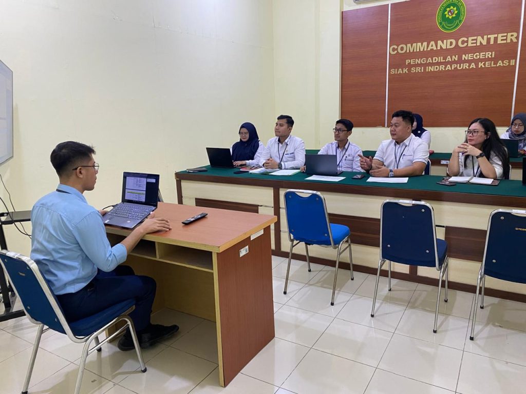 Siak Sri Indrapura – Senin 22 April 2024, bertempat di Ruang Command Center Pengadilan Negeri Siak Sri Indrapura telah berlangsung Asesmen Internal Pembangunan Zona Integritas yang dipimpin langsung oleh Ketua Pembangunan Zona Integritas Pengadilan Negeri Siak Sri Indrapura Bapak Ade Satriawan, S.H., M.H., dan dihadiri oleh Ketua Pengadilan Negeri Siak Sri Indrapura Bapak Muhammad Hibrian, S.H., selaku Pembina beserta Ketua masing-masing area Pembangunan Zona Integritas Pengadilan Negeri Siak Sri Indrapura. Asesmen dilakukan dengan memeriksa satu persatu setiap eviden yang sudah disediakan dan dicocokkan dengan checklist sesuai LKE pada sistem pmpzi. Ketua Pembangunan mengevaluasi kembali kelengkapan dokumen eviden di masing-masing area agar seluruhnya dapat sesuai dengan checklist pada LKE dan segala bentuk kekurangan maupun hal yang perlu diperbaiki akan menjadi catatan di masing-masing area untuk segera ditindaklanjuti dan diperbaiki agar dapat sesuai dengan checklist pada LKE.