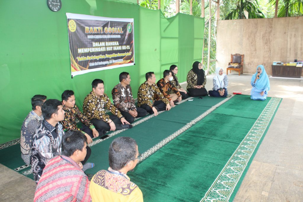 Siak Sri Indrapura – Kamis 21 Maret 2024 IKAHI Cabang Siak Sri Indrapura melaksanakan Bakti Sosial ke Pondok Pesantren Ibnu Sina Kecamatan Mempura Kabupaten Siak dalam rangkat Memperingati HUT IKAHI Ke-71 yang mengangkat tema “Hakim Berintegritas, Pengadilan Bermartabat”. Acara dimulai dengan sambutan dan pengenalan tentang Pesantren dan kegiatan keseharian para santri dari Kepala Yayasan yang dilanjutkan dengan penyerahan bantuan berupa sembako dan dana aecara simbolis. Acara ditutup dengan foto bersama.