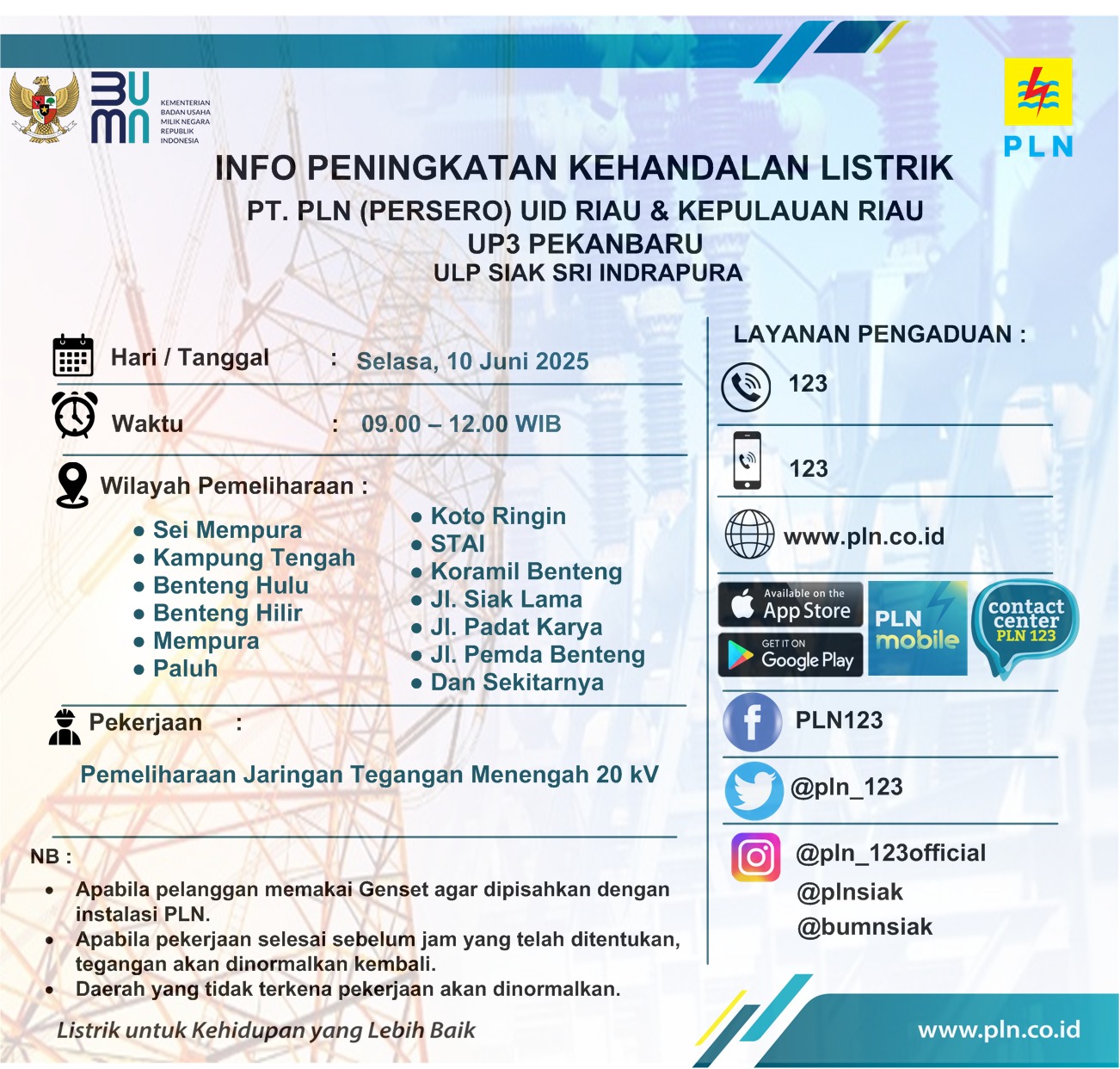 INFO PLN Selasa 10 Juni 2025