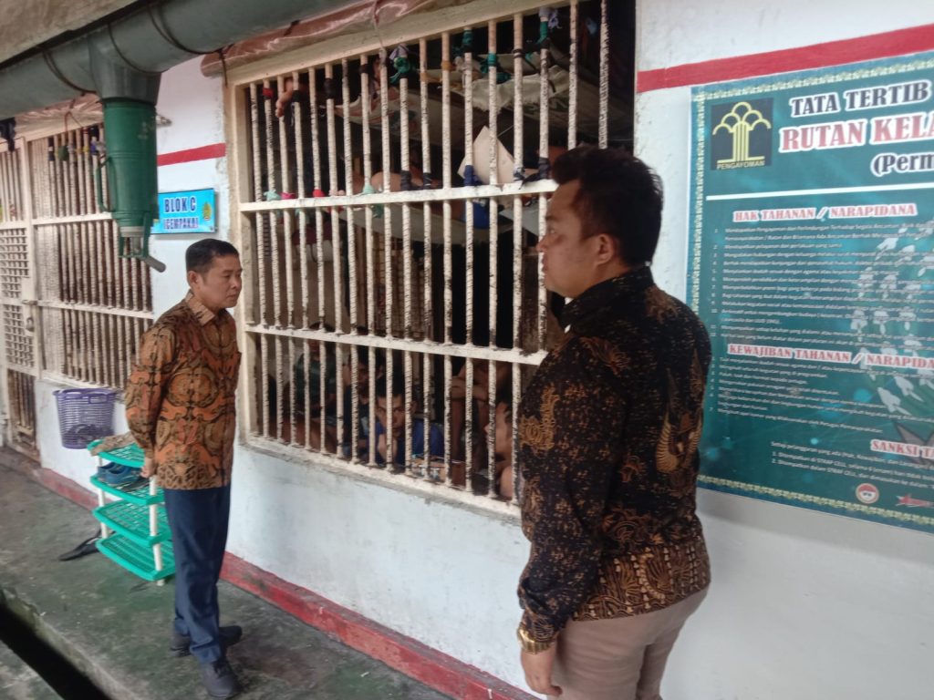 Siak Sri Indrapura – Rabu 07 Maret 2024 Hakim Wasmat Pengadilan Negeri Siak Sri Indrapura Ibu Rina Wahyu Yuliati, S.H., bersama Panitera Muda Pidana Bapak Muhammad Masnur, S.H. dan 3 (Tiga) orang staff melaksanakan Pengawasan dan Pengamatan (KIMWASMAT) pada Rumah Tahanan Kelas II Siak Sri Indrapura. KIMWASMAT dimulai dengan melihat keadaan di lingkungan dalam Rumah Tahanan dan melihat keadaan sel yang ditempati para tahanan yang didampingi oleh pihak Rumah Tahanan Bapak Edi Kurniawan. Setelah melihat keadaan sel, KIMWASMAT dilanjutkan dengan menanyakan beberapa pertanyaan seputar kegiatan dan lingkungan di Rumah Tahanan kepada beberapa sampel tahanan berjumlah 10(Sepuluh) orang tahanan.
