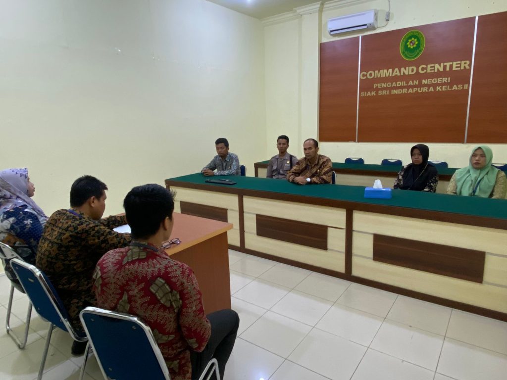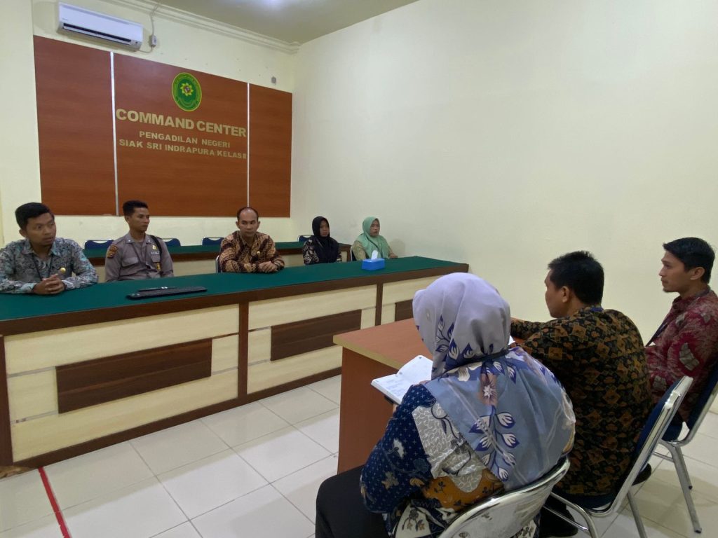 Siak Sri Indrapura – Kamis 18 Januari 2024 Pengadilan Negeri Siak Sri Indrapura melaksanakan Monitoring dan Evaluasi PPNPN di Ruang Command Center. Monev dipimpin oleh Sekretaris Pengadilan Negeri Siak Sri Indrapura Bapak M. Irwan Tofani, S.E.,M.Ak., dan dihadiri oleh Hakim Pengawas Bidang Kesekretariatan Bapak Fajri Ikrami, S.H., Kasubbag Kepegawaian Ibu Halide Nasution, S.H., beserta seluruh tenaga PPNPN Pengadilan Negeri Siak Sri Indrapura. Beberapa hal yang dibahas seperti kebersihan dan kerapian lingkungan kantor dimana PPNPN harus memperhatikan kebersihan beserta kedisiplinan dalam bekerja yang harus ditingkatkan. Adapun dalam hal kedisiplinan tenaga PPNPN diharapkan mampu untuk berkoordinasi lebih baik dalam hal penyampaian kehadiran maupun cuti agar segala hal dapat diantisipasi dan dikoordinasikan lebih baik.