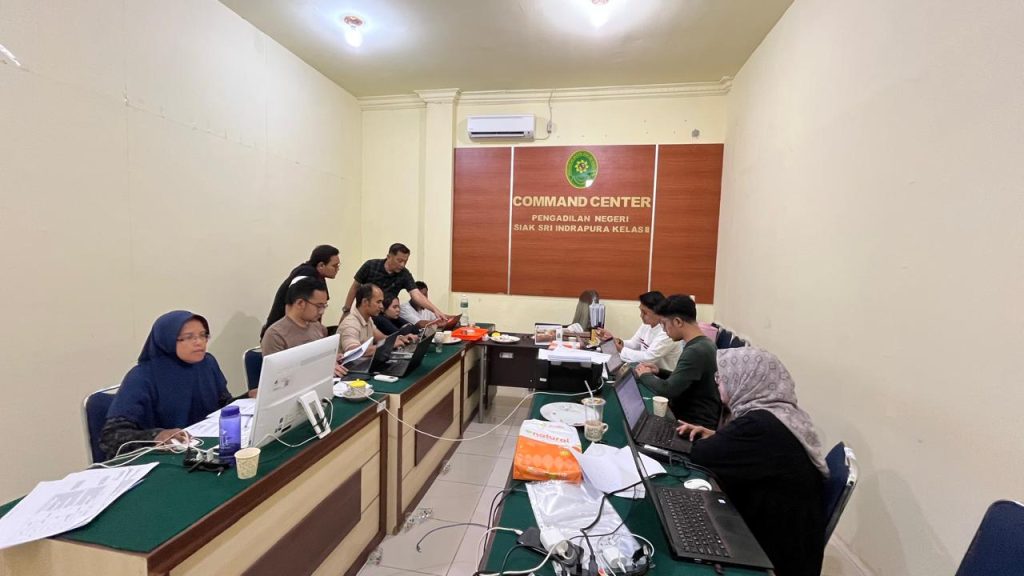 Siak Sri Indrapura – Selasa 13 Mei 2025 Berdasarkan SK Dirjen Badilum No.934/DJU/OT1.6/V/2025 Pengadilan Negeri Siak Sri Indrapura terpilih sebagai salah satu Pengadilan Negeri Calon Unit Kerja Berpredikat WBK Tahun 2025 yang diusulkan oleh Ditjen Badilum bersama 23 satker lainnya (PT/PN di seluruh Indonesia), maka dalam rangka melengkapi data/dokumen pendukung pengusulan WBK tersebut, Ketua PN Siak Sri Indrapura, Bapak Muhammad Hibrian, S.H. memimpin langsung kegiatan monitoring dan evaluasi ZI PN Siak, serta melaksanakan arahan dari ibu Nenny Sitohang selaku Pendamping ZI dari Badilum MA RI. Acara diikuti oleh beberapa orang Hakim dan Para Kasubbag selaku Koordinator Area ZI, serta Sekretaris PN selaku Tim Penilai Internal PN, serta beberapa orang Pegawai dan tenaga PPNPN selaku anggota Tim ZI. Kegiatan tersebut dimulai sejak hari Selasa, 13 Mei 2025 pukul 09.30 WIB dan berlangsung dengan lancar hingga hari Rabu 14 Mei 2025 pukul 01.00 dini hari.