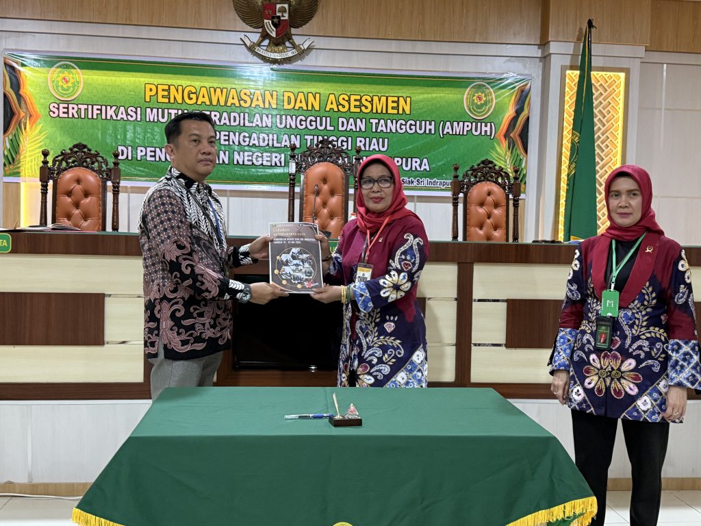 Siak Sri Indrapura – 21 Mei 2025 – 22 Mei 2025 Pengadilan Negeri Siak Sri Indrapura melaksanakan Opening & Closing Meeting Pembinaan dan Pengawasan oleh YM. Hakim Tinggi Dahmiwirda, S.H., M.H., selaku Hakim Tinggi Asesor dan Ketua Tim Pengawasan pada PN Siak Sri Indrapura, YM. Hakim Tinggi Sri Endang Amperawati Ningsih, S.H., M.H., selaku Hakim Tinggi Asesor dan Anggota Tim Pengawasan., beserta Ibu Juni Dwianti, S.Si, M.H., Ibu Betharia Oktaviani, S.E., Bapak Azwir S.H., selaku anggota Tim Pengawas. Opening Meeting diawali dengan Menyanyikan Lagu Indonesia raya dan Hymne Mahkamah Agung serta Pengucapan 7 Nilai Utama Mahkamah Agung. Acara dilanjutkan dengan Sambutan dari Ketua Pengadilan Negeri Siak Sri Indrapura Bapak Muhammad Hibrian, S.H. dan YM. Ibu Dahmiwirda, S.H., M.H., yang dilanjutkan dengan Penandatanganan Nota Kesepahaman oleh Ketua Tim Asesmen dan Ketua Pengadilan Negeri Siak Sri Indrapura Tim Asesmen dan Ketua Pengadilan Tim Asesmen dan Ketua Pengadilan Negeri Siak Sri Indrapura. Acara dilanjutkan dengan proses pengawasan dan asesmen sertifikasi mutu di Ruang Command Center Kantor Pengadilan Negeri Siak Sri Indrapura. Closing meeting dilakukan keesokan harinya dengan menyampaikan hasil temuan pada masing-masing bidang dan tenggang waktu pengerjaan tindaklanjut terhadap temuan tersebut berserta penandatanganan Berita Acara Laporan Hasil Pengawasan Daerah oleh Ketua Tim YM. Ibu Dahmiwirda, S.H., M.H., dan Ketua Pengadilan Negeri Siak Sri Indrapura Bapak Muhammad Hibrian, S.H. Acara diakhiri dengan pembacaan doa dan foto bersama.