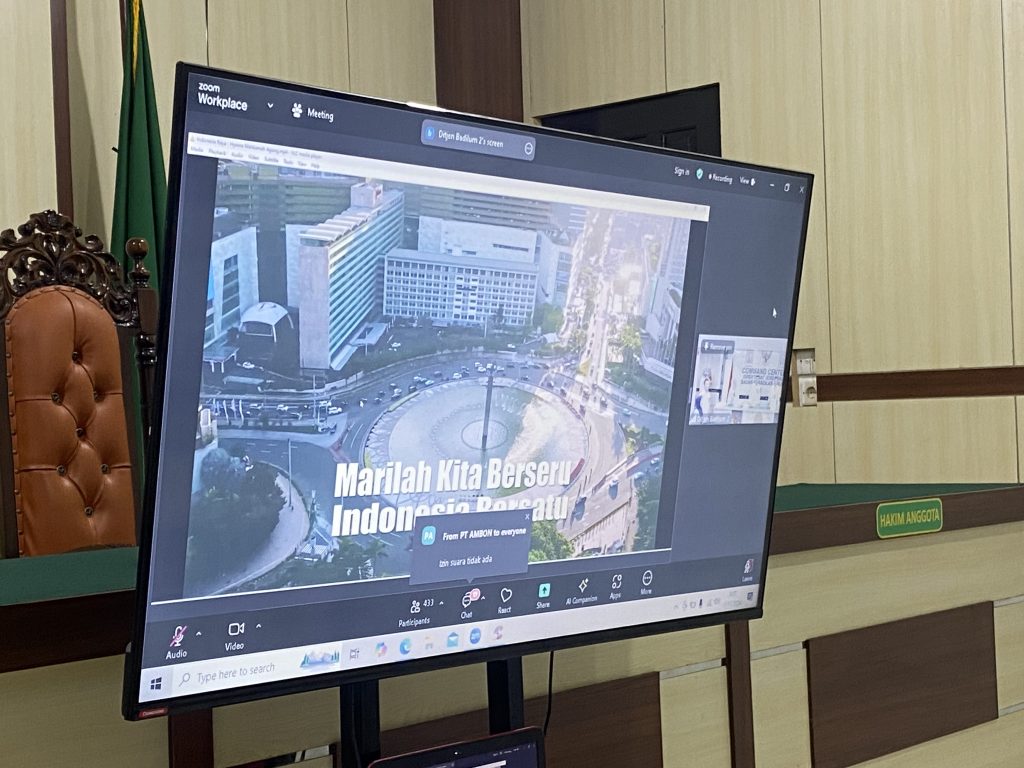 Siak Sri Indrapura – Senin 11 November 2024 Seluruh aparatur Pengadilan Negeri Siak Sri Indrapura mengikuti Pembinaan Pengadilan Negeri oleh Ditjen Badilum secara virtual di Ruang Media Center. Pembinaan dihadiri oleh Ketua Pengadilan Negeri Siak Sri Indrapura Bapak Muhammad Hibrian, S.H., Wakil Ketua Pengadilan Negeri Siak Sri Indrapura Bapak Ahmad Fadil, S.H., Panitera & Sekretaris, para Hakim beserta pejabat struktural dan fungsional dan para staff.