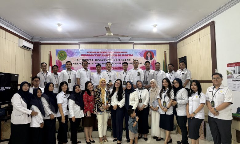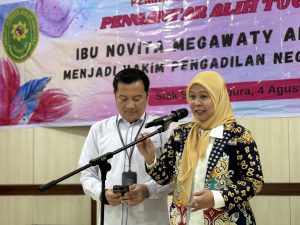 Siak Sri Indrapura โ Senin 04 Agustus 2025 Pengadilan Negeri Siak Sri Indrapura melaksanakan Acara Pengantar Alih Tugas Ibu Novita Megawaty Aritonang, S.H., menjadi Hakim Pengadilan Negeri Tanjung Balai. Acara dimulai dengan penyampaian pesan dan kesan dari Ibu Novita yang dilanjutkan dengan kesan dan kesan dari Ketua Pengadilan Negeri Siak Sri Indrapura Bapak Muhammad Hibrian, S.H., M.H., dan Ketua Dharmayukti Karini Cabang Siak Ny. Novrilia Woro Puspita Hibrian, S.H. Acara dilanjutkan dengan pemberian cindera mata, foto bersama dan makan bersama.