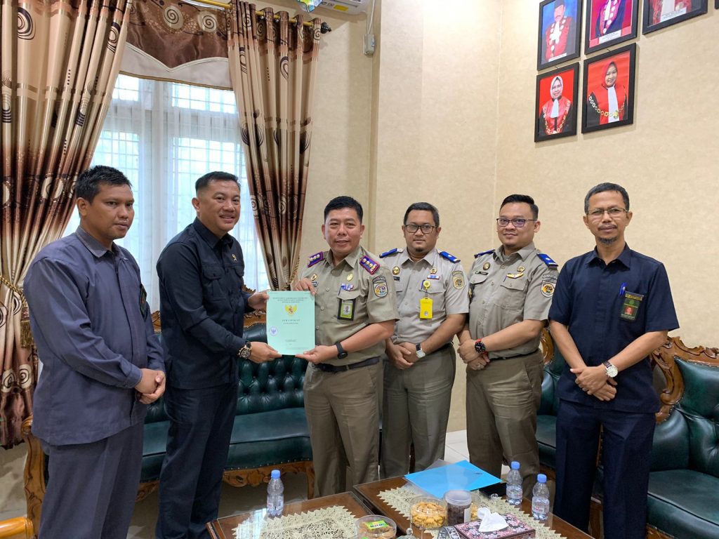 Siak Sri Indrapura – Selasa 04 Juli 2023 bertempat di Kantor Pengadilan Negeri Siak Sri Indrapura telah dilaksanakan penyerahan Sertifikat Tanah Hak Pakai Nomor 00052 oleh Kepala BPN Siak Bapak Tarbarita Simorangkir, S.SiT.,M.H. kepada Ketua Pengadilan Negeri Siak Sri Indrapura Bapak Muhammad Hibrian, SH. Tanah tersebut merupakan tanah hibah yang diperoleh dari Pemerintah Kabupaten Siak untuk rumah dinas Pengadilan Negeri Siak Sri Indrapura yang terletak di kelurahan kampung rempak Siak. Penyerahan dilakukan di Ruang Kerja Ketua Pengadilan Negeri Siak Sri Indrapura dan disaksikan oleh Panitera dan Sekretaris Pengadilan Negeri Siak Sri Indrapura.