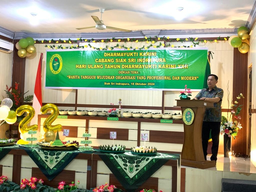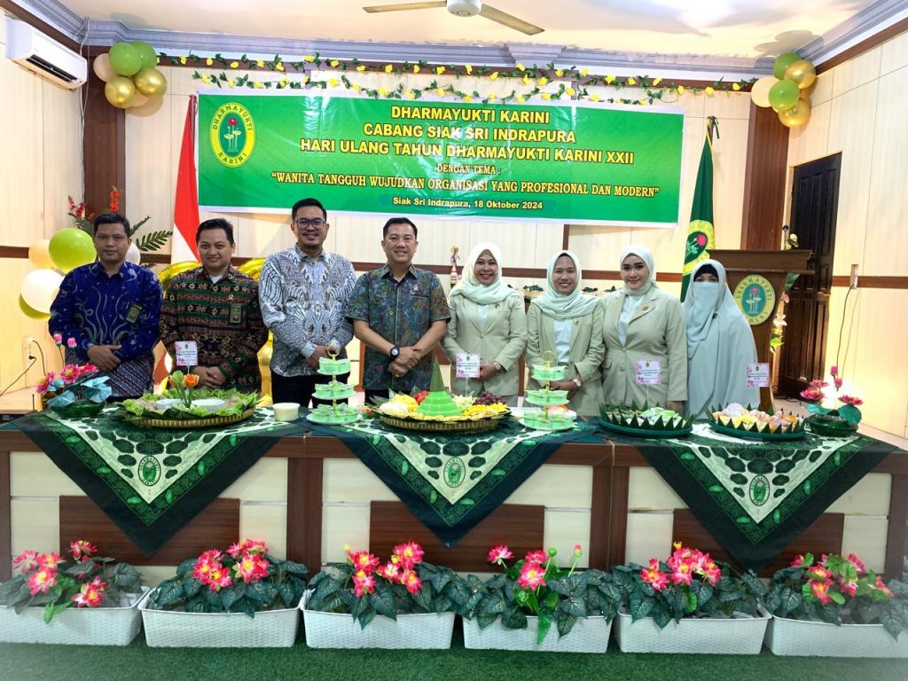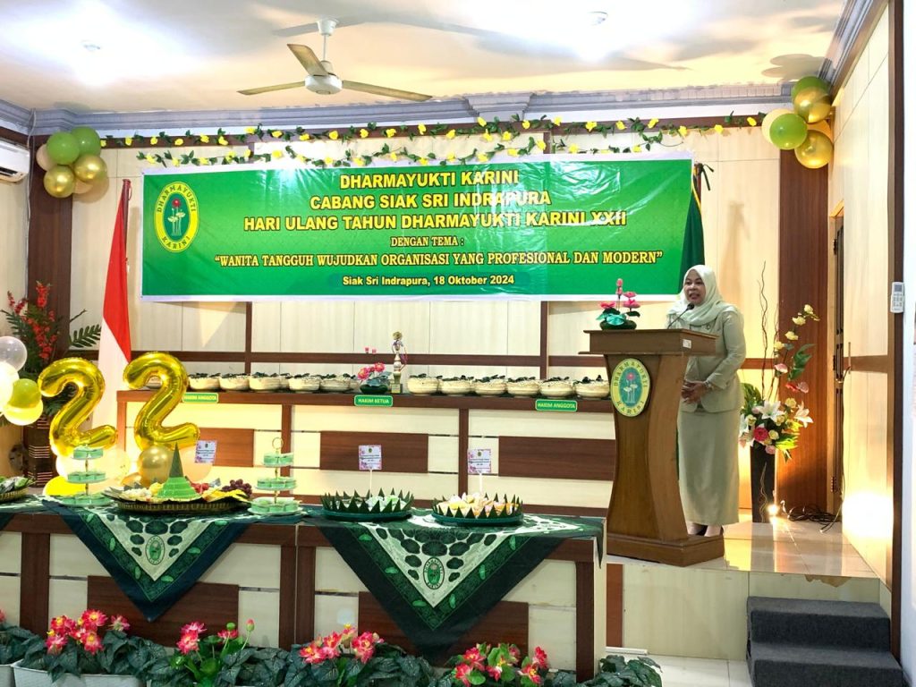 Siak Sri Indrapura – Jumat 18 Oktober 2024 Pengadilan Negeri Siak Sri Indrapura bersama dengan Dharmayukti Karini Cabang Siak Sri Indrapura melaksanakan Perayaan HUT Dharmayukti Karini Ke-22 di Ruang Media Center Pengadilan Negeri Siak Sri Indrapura. Bapak Pelindung Bapak Muhammad Hibrian, S.H., beserta Ketua Dharmayukti Karini Cabang Siak Ny. Novrilia Woro Puspita Hibrian, S.H. turut hadir memimpin acara tersebut serta memberikan sambutan. Pada kesempatan kali ini dilaksanakan juga Pertemuan Rutin, dengan agenda pembacaan laporan pada masing-masing seksi dan arisan.