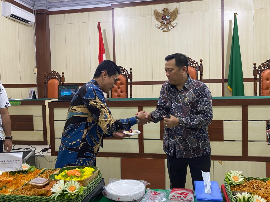 Siak Sri Indrapura – Kamis 19 September 2024 Pengadilan Negeri Siak Sri Indrapura melaksanakan Perayaan Ulang Tahun Ketua Pengadilan Negeri Siak Sri Indrapura Bapak Muhammad Hibrian, S.H., di Ruang Media Center.