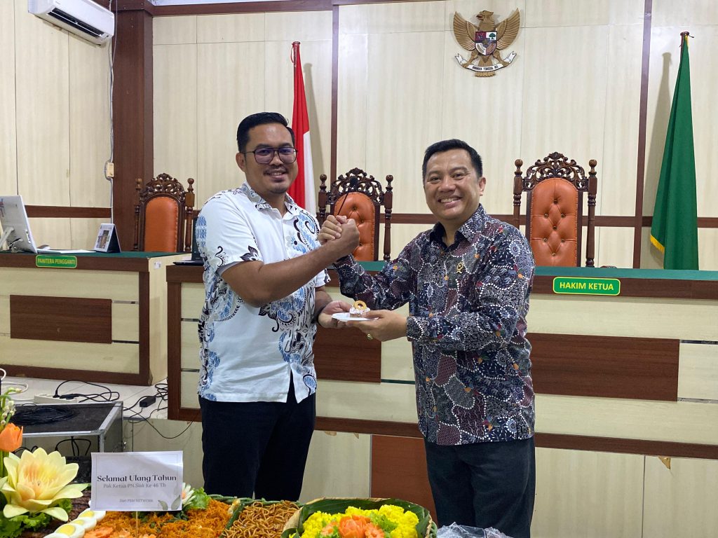 Siak Sri Indrapura – Kamis 19 September 2024 Pengadilan Negeri Siak Sri Indrapura melaksanakan Perayaan Ulang Tahun Ketua Pengadilan Negeri Siak Sri Indrapura Bapak Muhammad Hibrian, S.H., di Ruang Media Center.