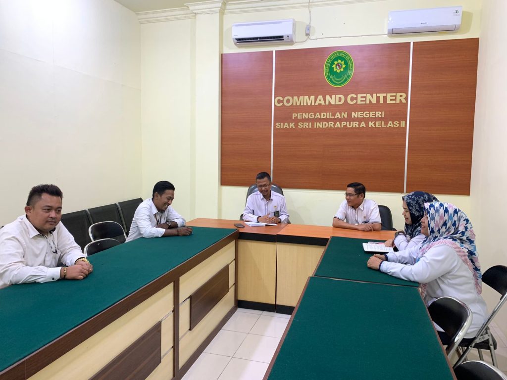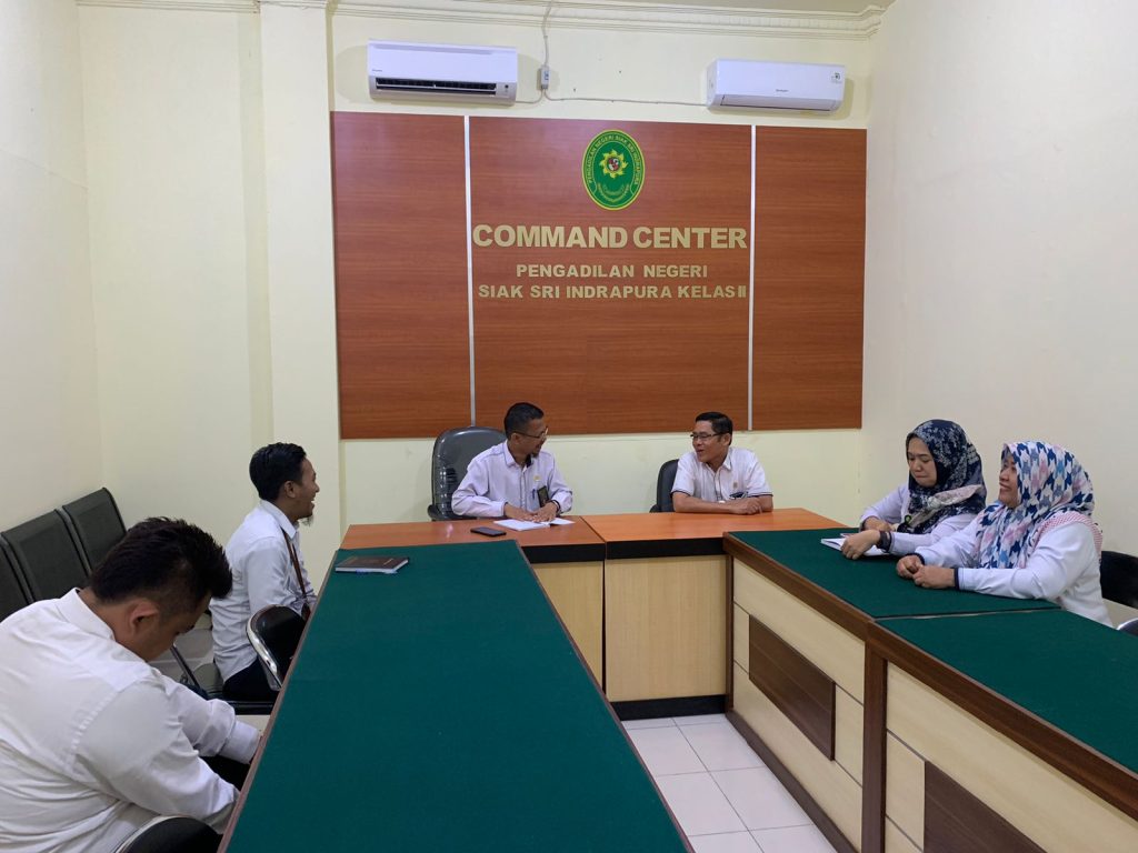 Siak Sri Indrapura – Senin 24 Juli 2023 Kepaniteraan Pengadilan Negeri Siak Sri Indrapura melaksanakan Rapat Bidang Kepaniteraan Bulan Juli 2023 di Ruang Command Center Kantor Pengadilan Negeri Siak Sri Indrapura. Rapat dipimpin oleh Panitera Pengadilan Negeri Siak Sri Indrapura Bapak Baginda Sultan Firmansyah, S.H., dan dipimpin oleh Panmud Pidana Bapak Muhammad Masnur, S.H., dan diikuti oleh Panmud Hukum Ibu Desi Yulianda, S.H., Panmud Perdata Bapak Muflikh Fauzan Asbar, S.H., beserta seluruh Pejabat Fungsional Panitera Pengganti dan Jurusita. Dalam Rapat tersebut dibahas tentang kinerja selama sebulan terakhir di bindang kepaniteraan serta hambatan yang dihadapi dalam pengerjaan tugas dan tanggung jawab. Tidak lupa Panitera juga mengingatkan tentang penerapan Perma No 7, 8 dan 9 Tahun 2016 tentang Disiplin kerja Hakim, Pengawasan dan Pembinaan Atasan Langsung dan Pedoman Penanganan Pengaduan (Whistleblowing System) dalam melakukan pekerjaan di setiap harinya.
