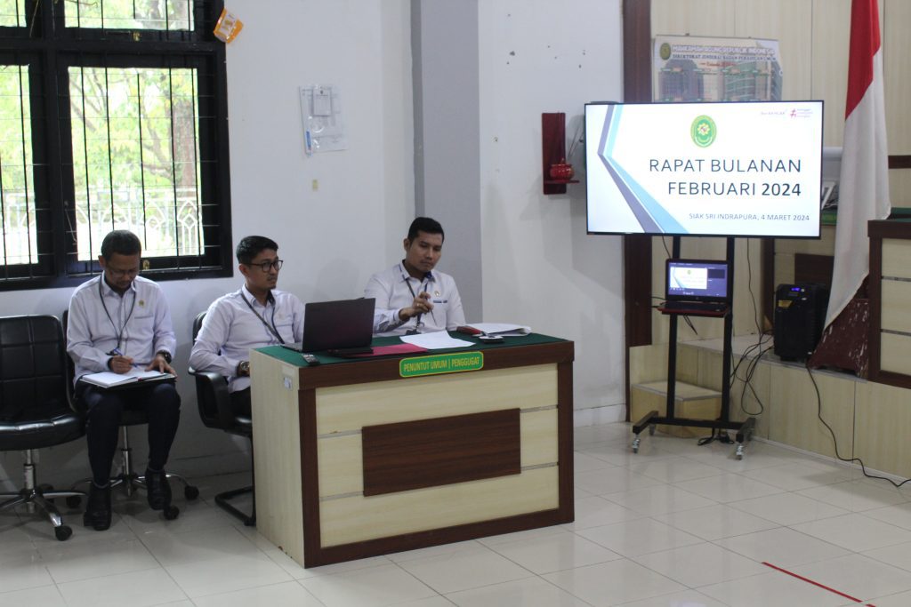 Siak Sri Indrapura – Senin 04 Maret 2024 Pengadilan Negeri Siak Sri Indrapura melaksanakan Rapat Bulanan Bulan Februari 2024 di Ruang Media Center. Rapat dipimpin oleh Ketua Pengadilan Negeri Siak Sri Indrapura Bapak Muhammad Hibrian, S.H., dan diikuti oleh Wakil Ketua Pengadilan Negeri Bapak Ade Satriawan, S.H., M.H., Panitera dan Sekretaris, para Hakim, Pejabat Fungsional dan Struktural, staff dan tenaga PPNPN. Dalam rapat dibahas tentang hasil temuan serta bentuk tindak lanjut yang akan dan sudah dilakukan dalam penyelesaian temuan di masing-masing bagian.