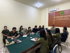 Siak Sri Indrapura – Rabu 19 November 2025 Pengadilan Negeri Siak Sri Indrapura melakukan Rapat Monitoring & Evaluasi Kinerja Bagian Kepaniteraan Bulan November 2025 di Ruang Command Center dan dipimpin langsung oleh Ketua Pengadilan Negeri Siak Sri Indrapura Bapak Radius Chandra, S.H., M.H., serta diikuti oleh Panitera beserta jajaran Kepaniteraan. Adapun pokok yang dibahas dalam kegiatan kali ini adalah tentang mekanisme pekerjaan seluruh bagian kepaniteraan dalam peningkatan nilai EIS. Melalui Rapat ini setiap bagian diharapkan dapat berkoordinasi lebih baik lagi dalam proses penyelesaian perkara tepat waktu baik pidana dan perdata.