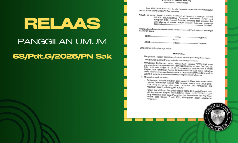 Relaas Panggilan Kepada Tergugat (Secara Umum) untuk nomor Perkara 68/Pdt.G/2025/PN Sak memanggil kepada saudara/i :
