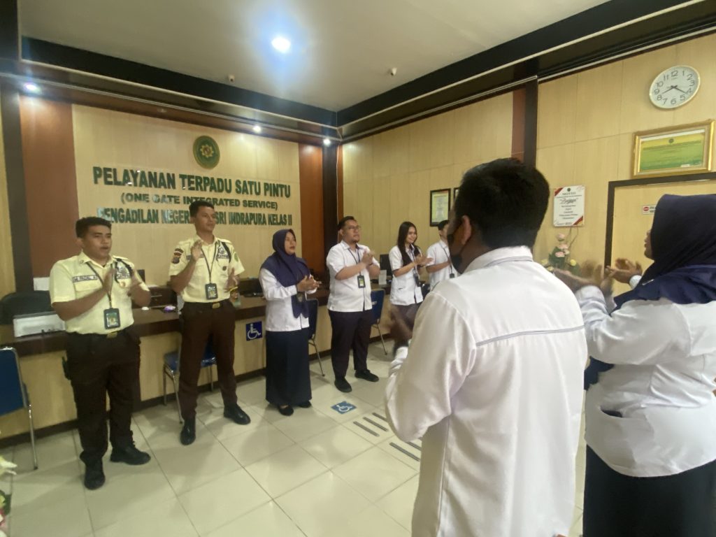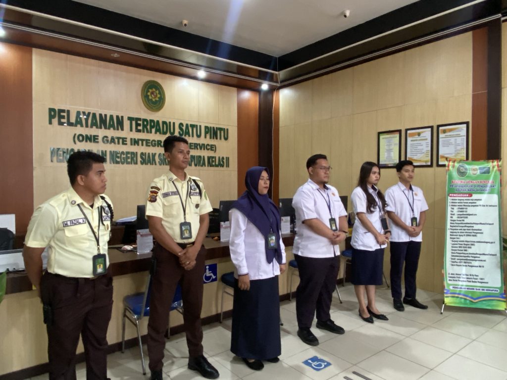 Siak Sri Indrapura – Senin 18 November 2024 Kasubbag Kepegawaian Ibu Halide Nasution, S.H., selaku Penanggungjawab Pengelola PTSP memimpin Semangat Pagi PTSP Pengadilan Negeri Siak Sri Indrapura bersama dengan Hakim Pengawas PTSP Ibu Rina Wahyu Yuliati, S.H., Pejabat Pengelola PTSP Bapak Baginda Sultan Firmansyah, S.H., Bapak M. Irwan Tofani, S.E., M.Ak. Setelah menyanyikan yel yel PTSP PN Siak Sri Indrapura Penanggungjawab Pengelola PTSP mulai menanyakan tentang progress maupun keluhan serta hambatan di masing-masing bagian PTSP serta mencari solusi dan tindak lanjut terhadap hambatan tersebut. Semangat pagi ditutup dengan doa bersama.