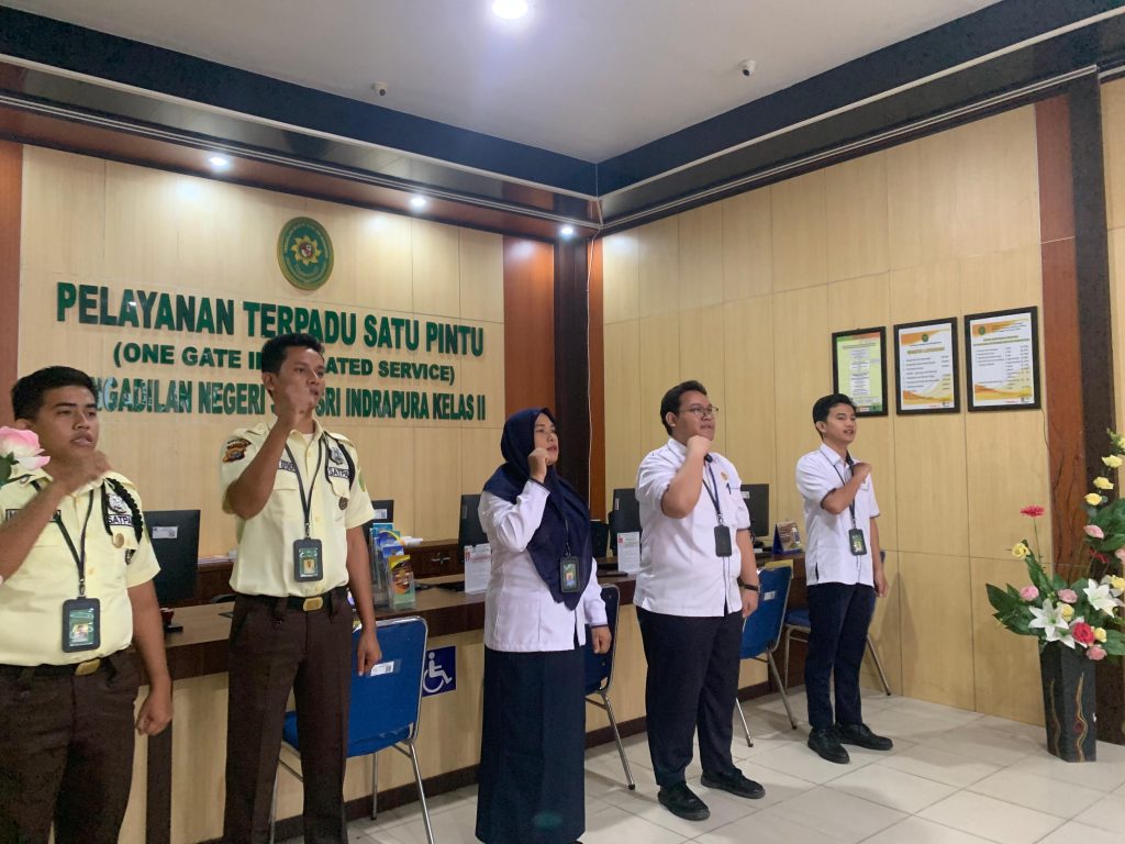 Siak Sri Indrapura – Senin 30 Desember 2024 Kasubbag PTIP Ibu Rizkha Yuneyla, S.T., selaku Penanggungjawab Pengelola PTSP memimpin Semangat Pagi PTSP Pengadilan Negeri Siak Sri Indrapura bersama dengan Pejabat Pengelola PTSP Bapak Aryananda, S.H.,M.H., dan Hakim Pengawas PTSP Ibu Rina Yuliati, S.H. Setelah menyanyikan yel yel PTSP PN Siak Sri Indrapura Penanggungjawab Pengelola PTSP mulai menanyakan tentang progress maupun keluhan serta hambatan di masing-masing bagian PTSP serta mencari solusi dan tindak lanjut terhadap hambatan tersebut. Semangat pagi ditutup dengan doa bersama.