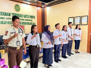 Siak Sri Indrapura – Senin 21 Juli 2025 Panitera Muda Perdata Bapak Muflikh Fauzan Asbar, S.H., dan Hakim Pengawas Bidang PTSP Ibu Rina Wahyu Yuliati, S.H., memimpin Semangat Pagi PTSP Pengadilan Negeri Siak Sri Indrapura bersama dengan Pejabat Pengelola PTSP Bapak Irwan Tofani, S.H. Setelah menyanyikan yel yel PTSP PN Siak Sri Indrapura Penanggungjawab Pengelola PTSP mulai menanyakan tentang progress maupun keluhan serta hambatan di masing-masing bagian PTSP serta mencari solusi dan tindak lanjut terhadap hambatan tersebut. Semangat pagi ditutup dengan doa bersama.