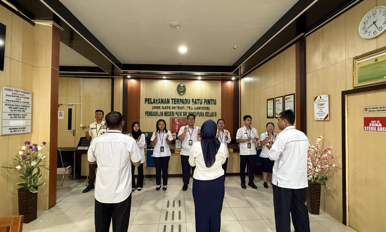 Siak Sri Indrapura – Senin 04 Agustus 2025 Hakim Pengawas Bidang PTSP Ibu Rina Wahyu Yuliati, S.H., memimpin Semangat Pagi PTSP Pengadilan Negeri Siak Sri Indrapura bersama dengan Pejabat Pengelola PTSP Bapak Irwan Tofani, S.H., dan Aryananda, S.H., M.H. Setelah menyanyikan yel yel PTSP PN Siak Sri Indrapura Penanggungjawab Pengelola PTSP mulai menanyakan tentang progress maupun keluhan serta hambatan di masing-masing bagian PTSP serta mencari solusi dan tindak lanjut terhadap hambatan tersebut. Semangat pagi ditutup dengan doa bersama.