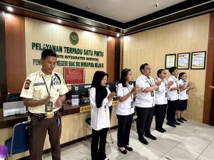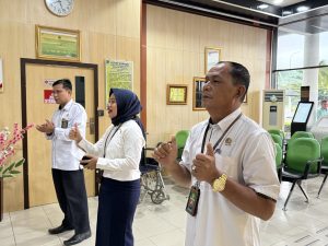 Siak Sri Indrapura – Senin 04 Agustus 2025 Hakim Pengawas Bidang PTSP Ibu Rina Wahyu Yuliati, S.H., memimpin Semangat Pagi PTSP Pengadilan Negeri Siak Sri Indrapura bersama dengan Pejabat Pengelola PTSP Bapak Irwan Tofani, S.H., dan Aryananda, S.H., M.H. Setelah menyanyikan yel yel PTSP PN Siak Sri Indrapura Penanggungjawab Pengelola PTSP mulai menanyakan tentang progress maupun keluhan serta hambatan di masing-masing bagian PTSP serta mencari solusi dan tindak lanjut terhadap hambatan tersebut. Semangat pagi ditutup dengan doa bersama.