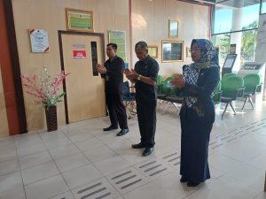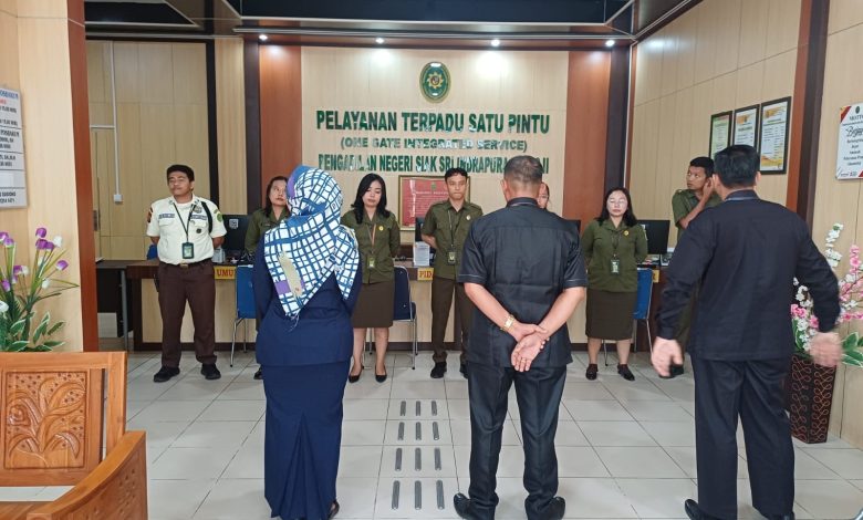 Siak Sri Indrapura – Selasa 26 Agustus 2025 Pejabat Pengelola PTSP Bapak Aryananda, S.H., M.H., Bapak Irwan Tofani, S.E., M.Ak. dan Hakim Pengawas PTSP Ibu Rina Wahyu Yuliati, S.H., memimpin Semangat Pagi PTSP Pengadilan Negeri Siak Sri Indrapura. Setelah menyanyikan yel yel PTSP PN Siak Sri Indrapura. Pejabat Pengelola PTSP mulai menanyakan tentang progress maupun keluhan serta hambatan di masing-masing bagian PTSP serta mencari solusi dan tindak lanjut terhadap hambatan tersebut. Semangat pagi ditutup dengan doa bersama.