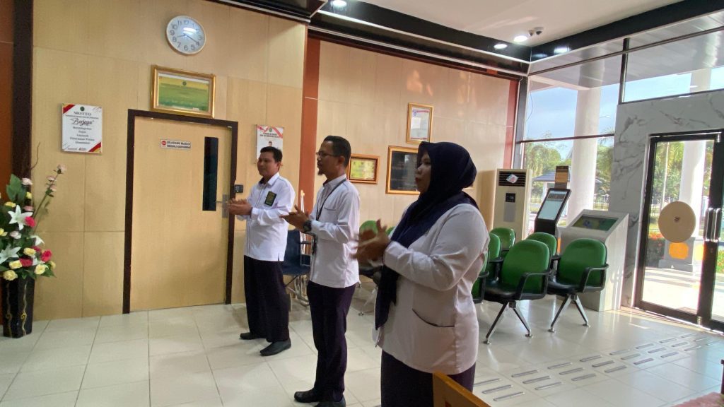 Siak Sri Indrapura – Senin 23 September 2024 Kasubbag Kepegawaian Ibu Halide Nasution, S.H., selaku Penanggungjawab Pengelola PTSP memimpin Semangat Pagi PTSP Pengadilan Negeri Siak Sri Indrapura bersama dengan Pejabat Pengelola PTSP Bapak Baginda Firmansyah, S.H., dan Bapak M. Irwan Tofani, S.E., M.Ak. Setelah menyanyikan yel yel PTSP PN Siak Sri Indrapura Penanggungjawab Pengelola PTSP mulai menanyakan tentang progress maupun keluhan serta hambatan di masing-masing bagian PTSP serta mencari solusi dan tindak lanjut terhadap hambatan tersebut. Semangat pagi ditutup dengan doa bersama.