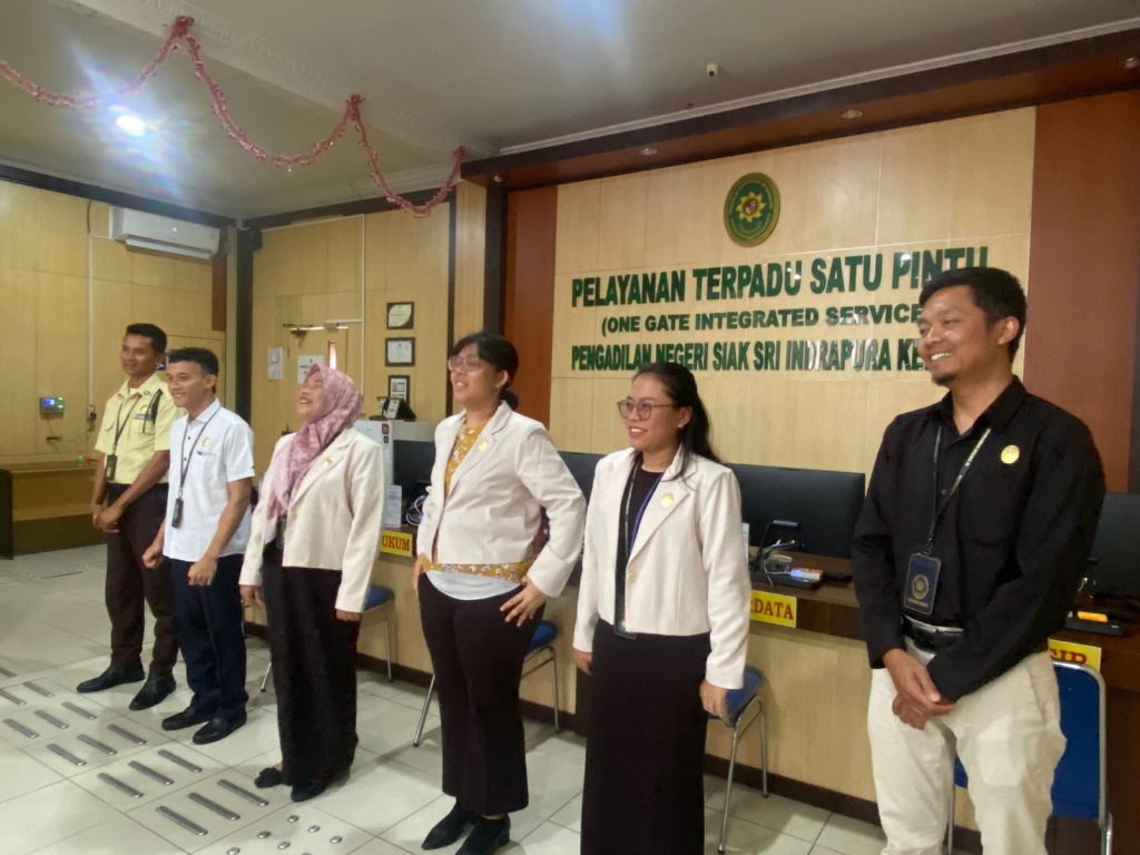 Siak Sri Indrapura – Senin 22 Januari 2024 Panitera Muda Pidana Muhammad Masnur, S.H., memimpin Semangat Pagi PTSP Pengadilan Negeri Siak Sri Indrapura bersama dengan Hakim Pengawas PTSP Ibu Novita Megawaty Aritonang, S.H. Setelah menyanyikan yel yel PTSP PN Siak Sri Indrapura Panitera Muda Pidana mulai menanyakan tentang progress maupun keluhan serta hambatan di masing-masing bagian PTSP serta mencari solusi dan tindak lanjut terhadap hambatan tersebut. Semangat pagi ditutup dengan doa bersama.