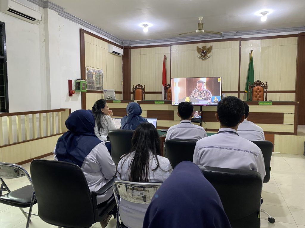 Siak Sri Indrapura – Senin 09 Desember 2024 Pengadilan Negeri Siak Sri Indrapura mengikuti Undangan Seminar Nasional Peringatan Hari Anti-Korupsi Sedunia 2024, Penyerahan Sertifikat SMAP dan Penganugerahan Insan Anti-Gratifikasi secara virtual melalui aplikasi Zoom di Ruang Media Center Kantor Pengadilan Negeri Siak Sri Indrapura.