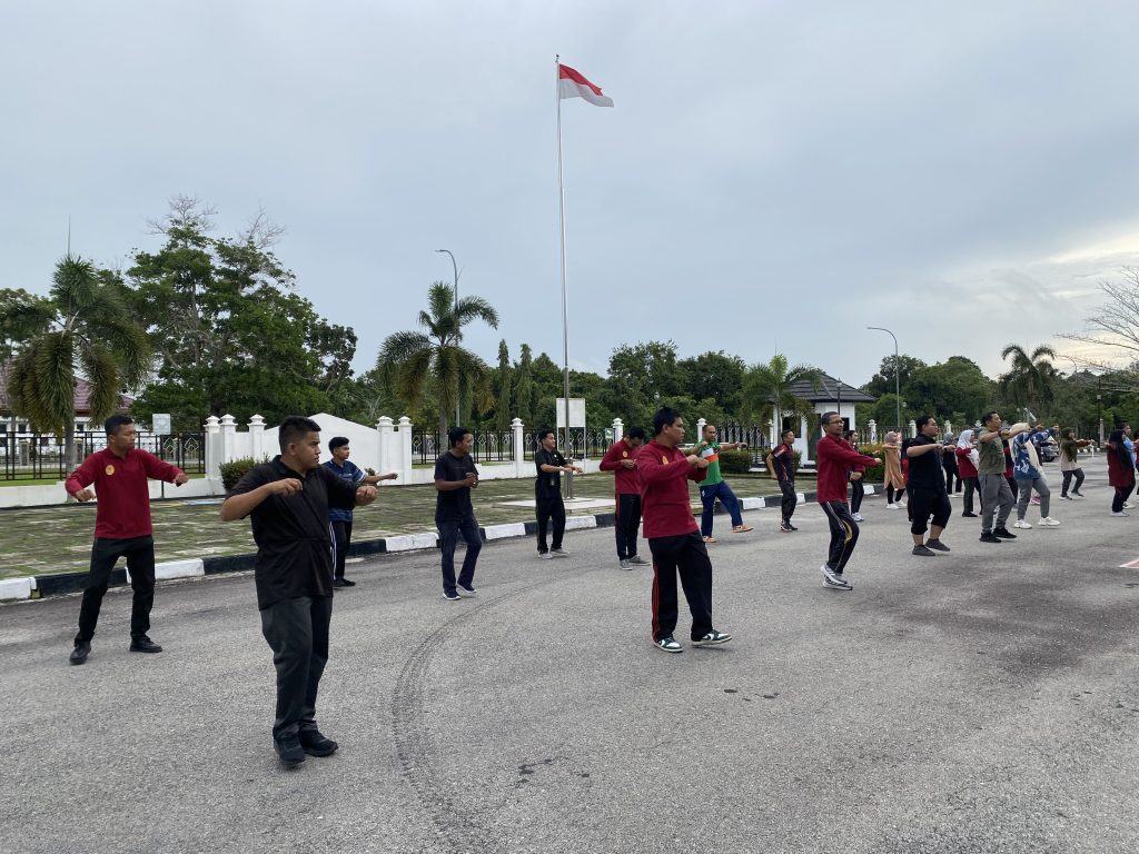 Siak Sri Indrapura – Jumat 08 November 2024 Pengadilan Negeri Siak Sri Indrapura melaksanakan Senam Jumat Pagi di Halaman Kantor Pengadilan Negeri Siak Sri Indrapura Kelas II. Senam Jumat Pagi diikuti oleh Ketua Pengadilan Negeri Siak Sri Indrapura Bapak Muhammad Hibrian, S.H., para Hakim, para Pejabat Fungsional dan Struktural serta tenaga PPNPN. Setelah senam pagi seluruh aparatur Pengadilan Negeri Siak sarapan bersama di area kolam ikan.