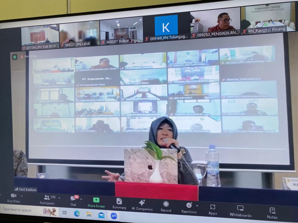 Siak Sri Indrapura – 29 Februari 2024 Pejabat Pembuat Komitmen (PPK) Pengadilan Negeri Siak Sri Indrapura Bapak M. Irwan Tofani, S.E., M.Ak, bersama dengan Bendahara Pengadilan Negeri Siak Sri Indrapura Ibu Amalia Rizky Arini, A.Md. mengikuti Undangan Kegiatan Evaluasi Pelaksanaan Anggaran secara virtual di Ruang Command Center Pengadilan Negeri Siak Sri Indrapura. Acara tersebut diselenggarakan oleh Direktorat Jenderal Badan Peradilan Umum untuk membahas Evaluasi Pelaksanaan Anggaran TA 2023 dan Perencanaan Pelaksanaan Anggaran DIPA 03 TA 2024.