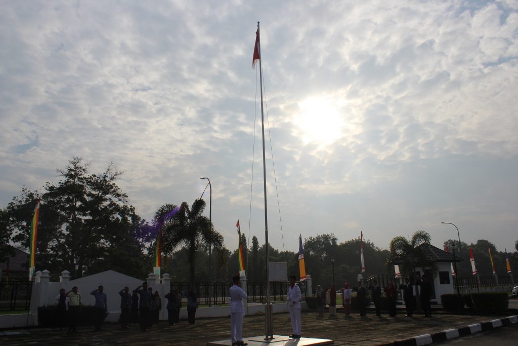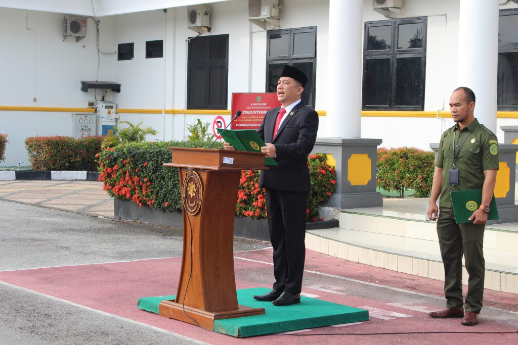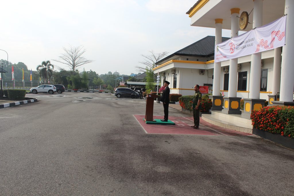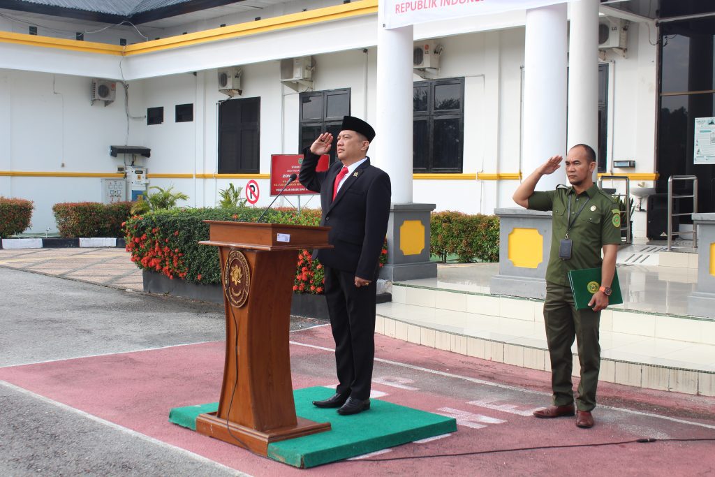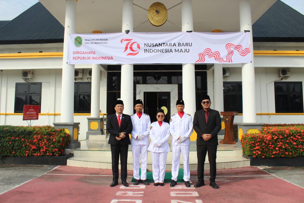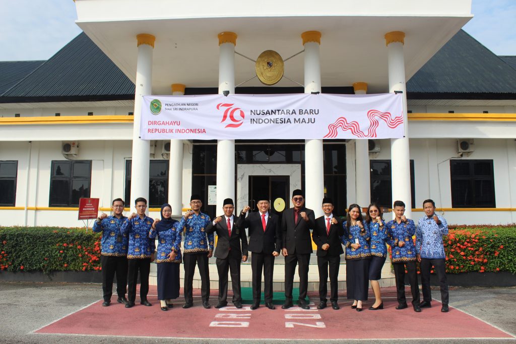 Siak Sri Indrapura – Sabtu 17 Agustus 2024 Pengadilan Negeri Siak Sri Indrapura melaksanakan Upacara Bendera memperingati HUT RI Ke-79 di Halaman Kantor Pengadilan Negeri Siak Sri Indrapura Kelas II. Upacara dipimpin oleh Ketua Pengadilan Negeri Siak Sri Indrapura Bapak Muhammad Hibrian, S.H., dan diikuti oleh Wakil Ketua Pengadilan Negeri Siak Sri Indrapura Bapak Ahmad Fadil, S.H., para Hakim, Pejabat Struktural dan Fungsional, tenaga PPNPN serta mahasiswa magang. Pada Upacara kali ini juga diberikan penghargaan Setya Lencana XXX kepada pegawai yang telah mengabdi, antara lain atas nama Baginda Sultan Firmansyah, S.H., Panitera Pengadilan Negeri Siak Sri Indrapura dan Muhammad Masnur, S.H., Panitera Muda Pidana Pengadilan Negeri Siak Sri Indrapura. Upacara berlangsung dengan lancar dan saksama. Setelah Upacara selesai dilaksanakan dengan lancar acara dilanjutkan dengan berfoto bersama serta makan bersama di area kolam Kantor Pengadilan Negeri Siak Sri Indrapura.
