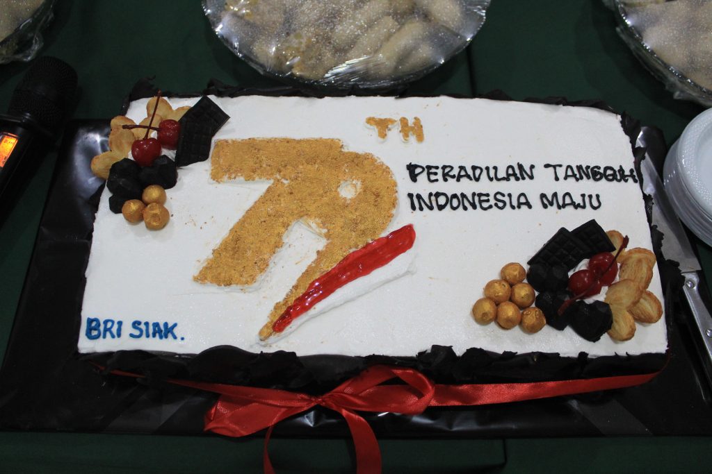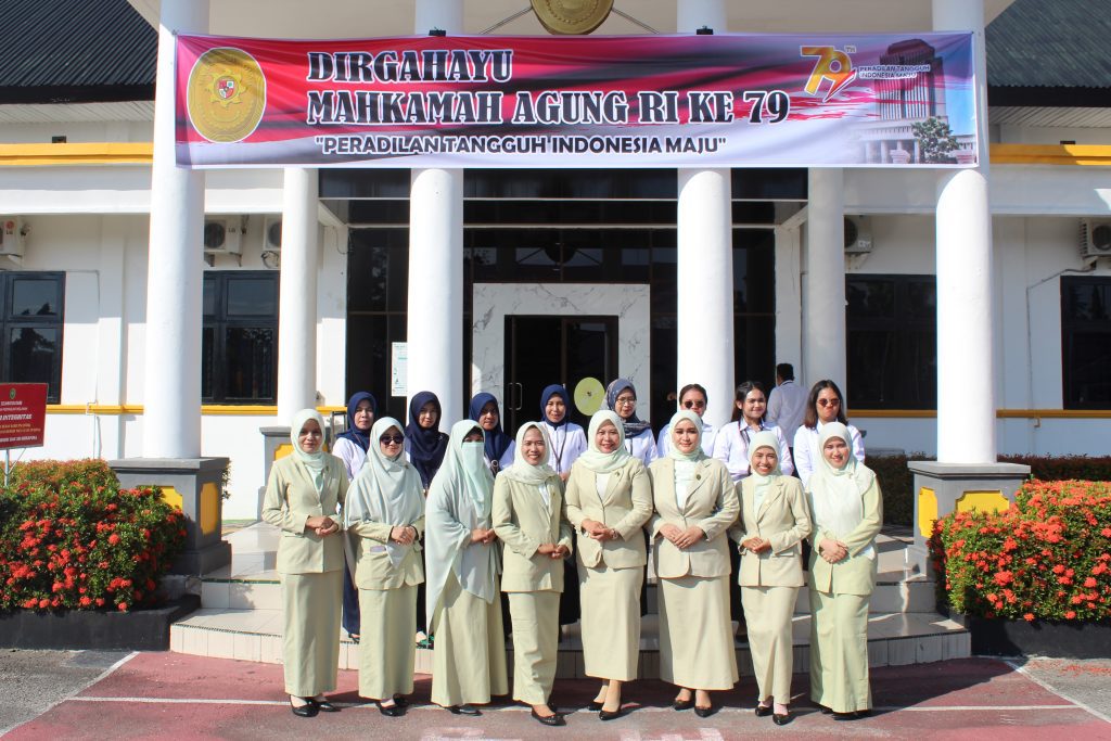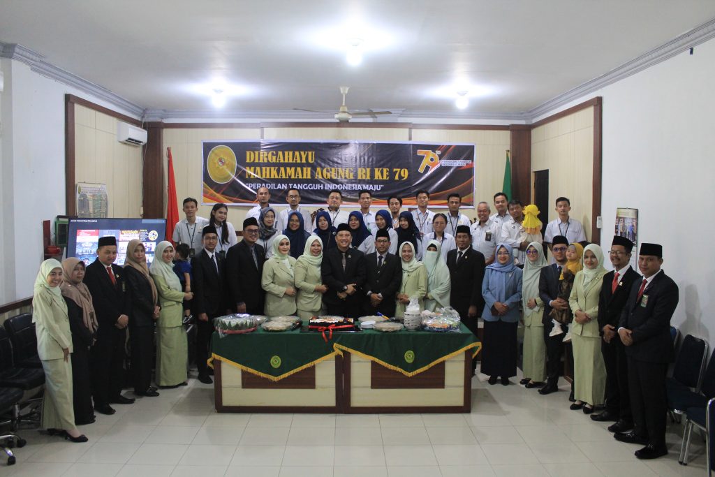 Siak Sri Indrapura – 19 Agustus 2024 Pengadilan Negeri Siak Sri Indrapura bersama dengan Pengadilan Agama Siak Sri Indrapura melaksanakan Upacara Memperingati Hari Ulang Tahun Mahkamah Agung Republik Indonesia Ke-79 di Halaman Kantor Pengadilan Negeri Siak Sri Indrapura. Upacara dimulai pada pukul 08.00 WIB tepat dan berlangsung dengan lancar dan khidmat. Acara dilanjutkan dengan pemotongan tumpeng dan kue sebagai bentuk perayaan HUT MA RI Ke-79 di Ruang Sidang Kartika. Acara ditutup dengan foto bersama dan makan bersama serta hiburan.